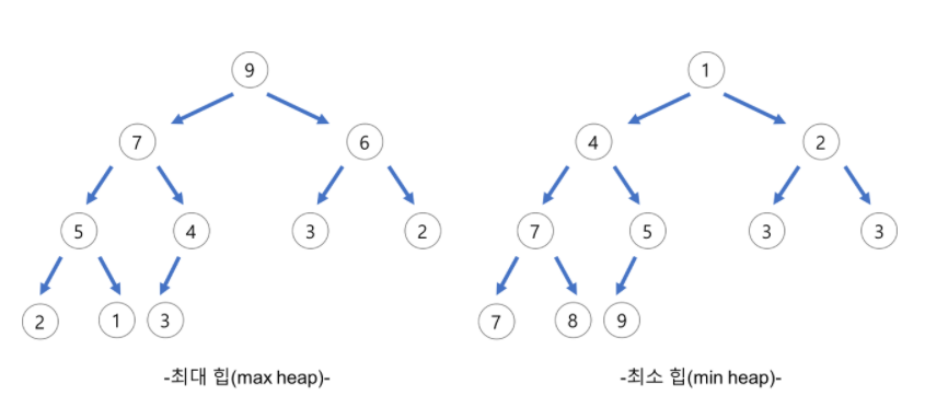 *보통 힙이라고 하면 일반적으로 최대 힙을 의미한다.