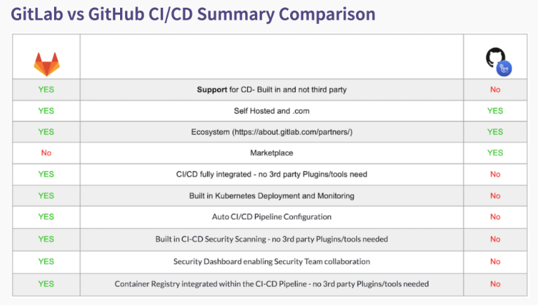 - 자체적으로 깃랩보다 적은 수의 소프트웨어 서비스를 제공한다. 대신 외부 프로그램 및 서비스와 통합하는 쉬운 방법을 제공한다.